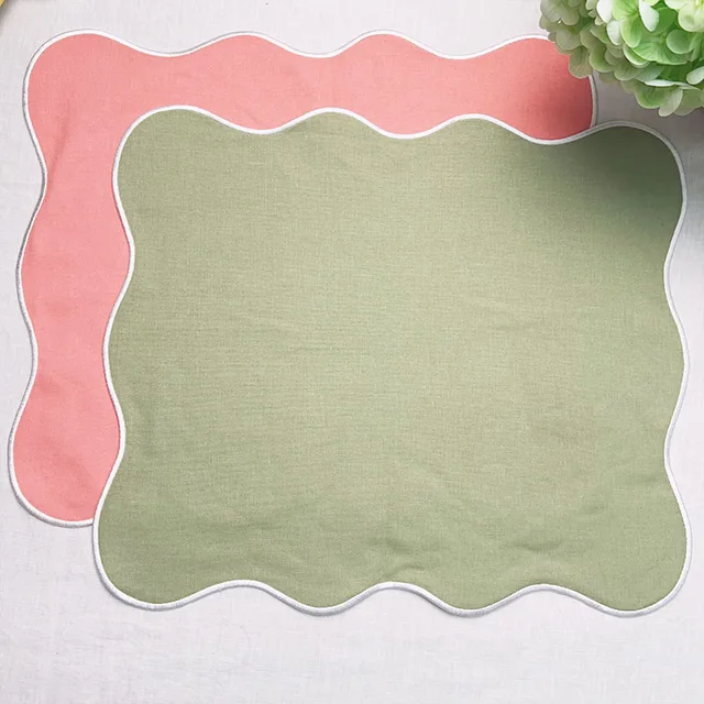 100% Flax Custom Scallop Trim Organic Linen Dinner Fabric Napkins for Wedding Restaurant