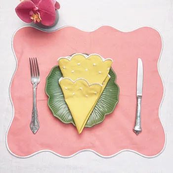 100% Flax Custom Scallop Trim Organic Linen Dinner Fabric Napkins for Wedding Restaurant